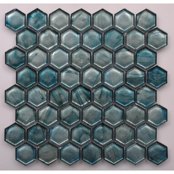 H4464L01 Hexagonal Shape Iridescent Glass Mosaic Images |